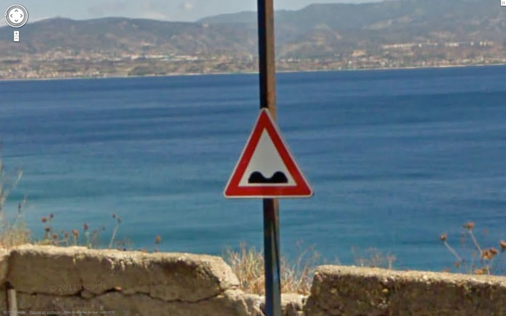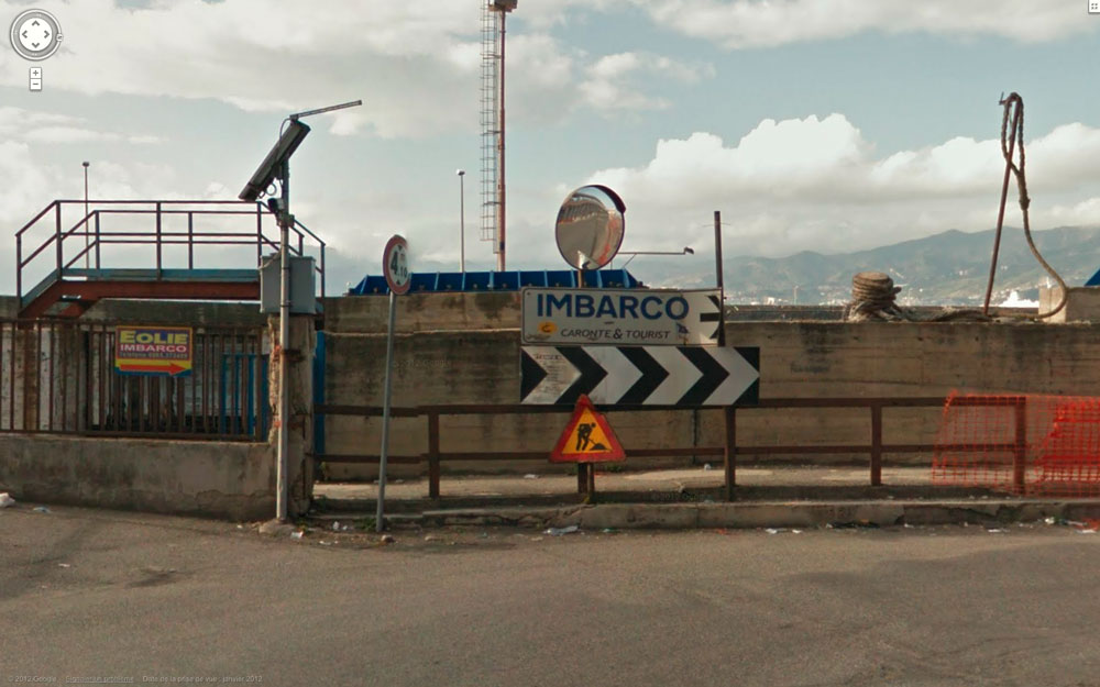 Les photos ci-dessus ont été réalisées dans le détroit de Messine (entre Charybde et Scylla) avec l’application Street View de Google Maps.