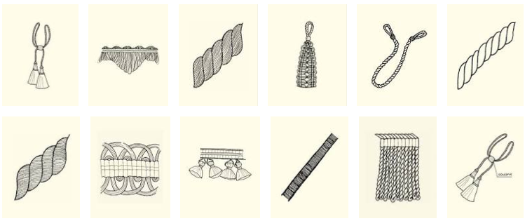 Galon Passementerie plate ou à fond plat tissée dont il existe un nombre illimité de modèles.